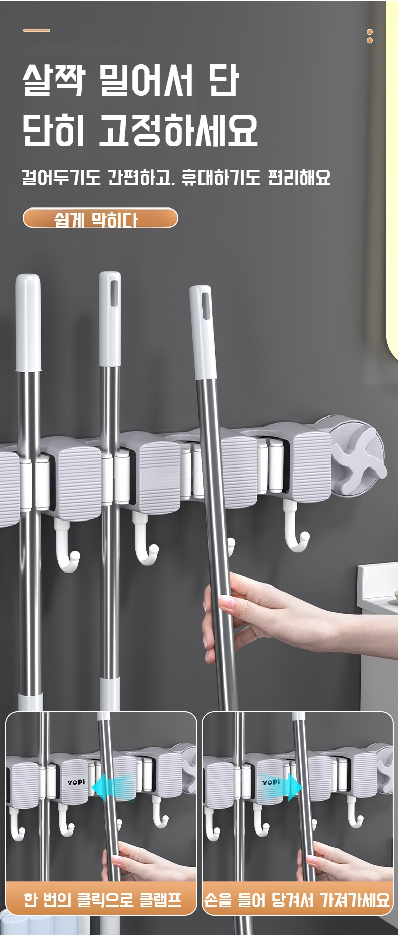 펀치 없는 벽걸이형 걸레걸이